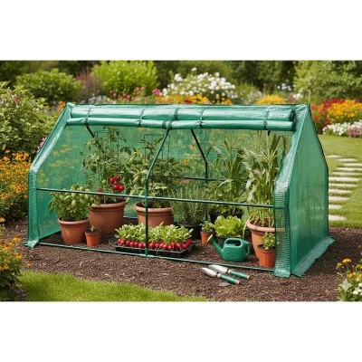 180 x 90 x 90 Cm Greenhouse Tent - Mini Greenhouse With Steel Frame, Green PE Cover, Zipped Door- Portable Greenhouse For Plants And Vegetables- Perfect for Outdoor Garden